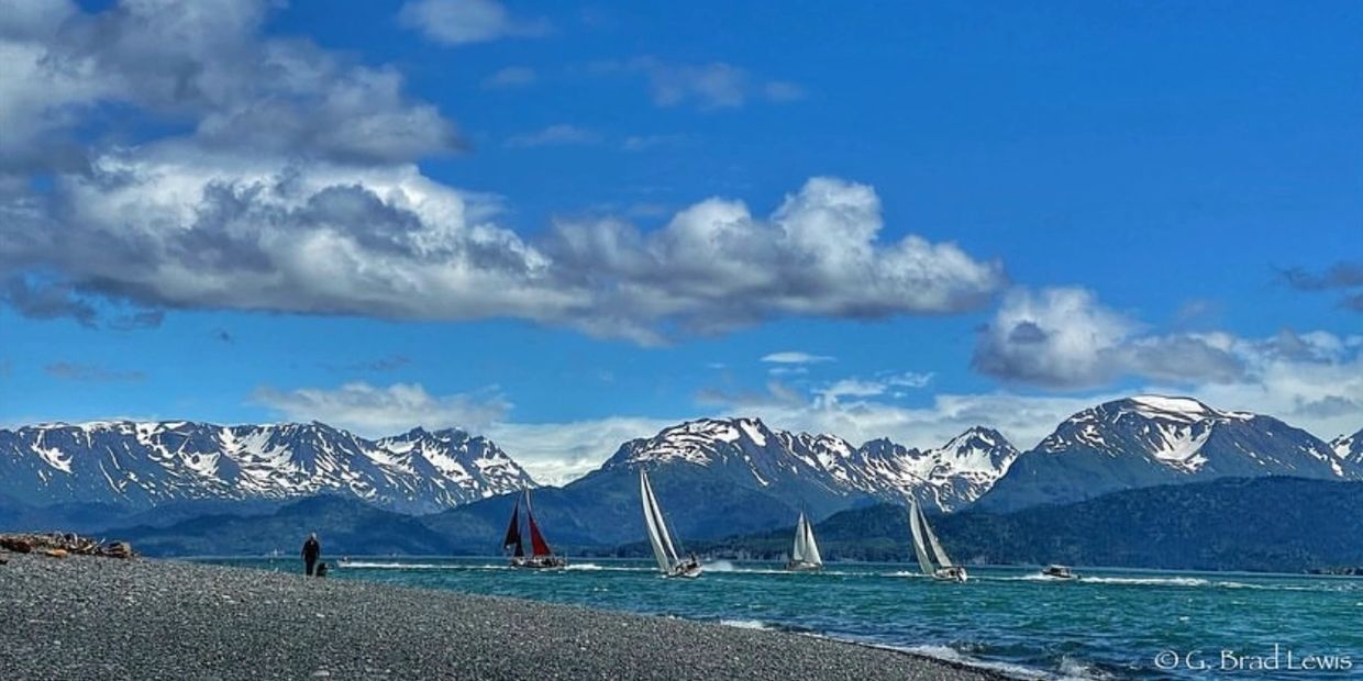 The Homer Yacht Club sails primarily on beautiful Kachemak Bay, on the west side of southcentral Alaska's spectacular Kenai Peninsula. Approximately twenty miles long, Kachemak Bay encompasses several islands, bays and coves flanked by towering mountains with 7 glaciers and direct access to Cook Inlet. Marine wildlife is vastly abundant with seals, sea lions, sea otters, porpoise, whales and numerous species of pelagic birds... and perhaps a black bear sighting.
